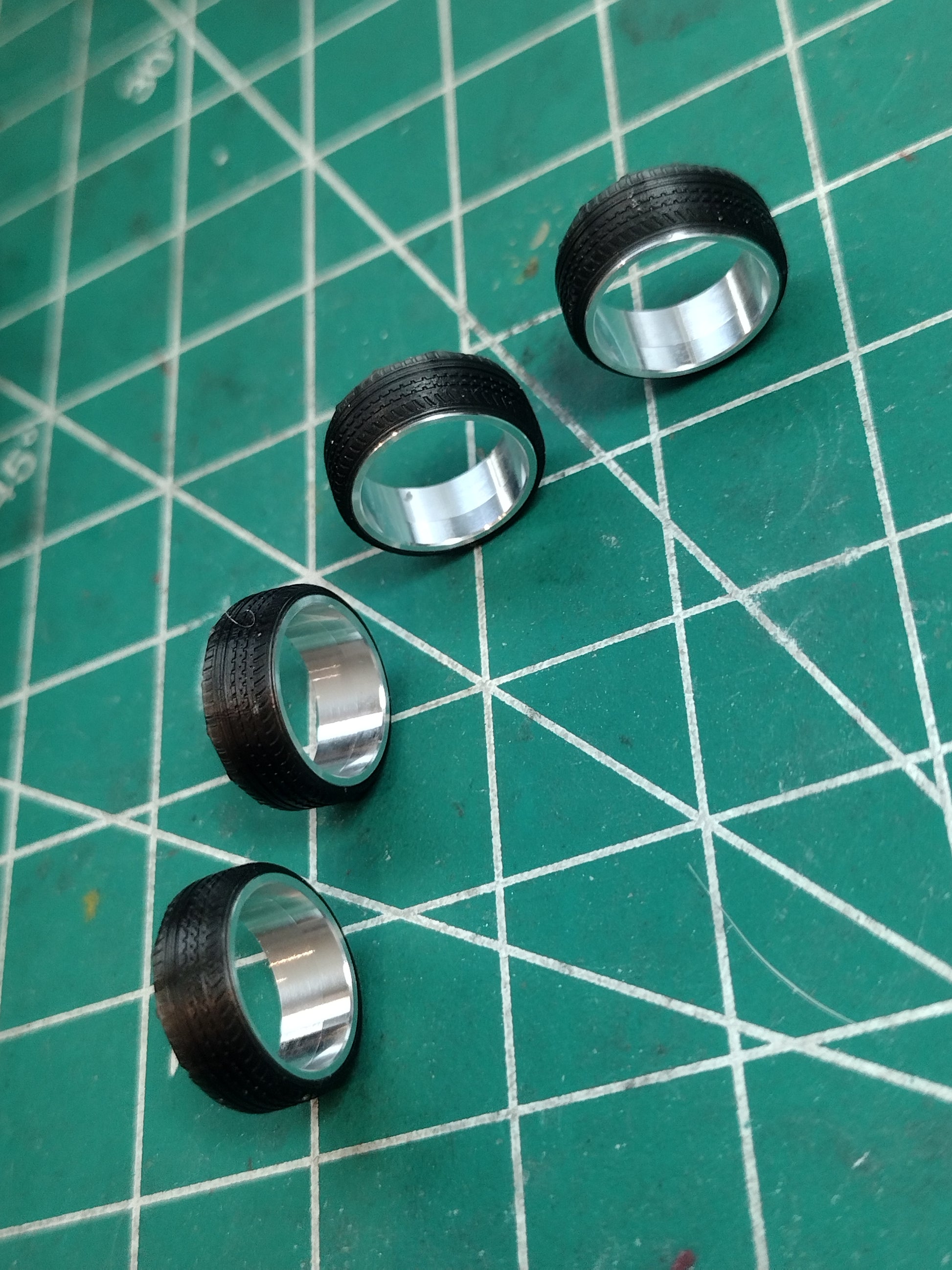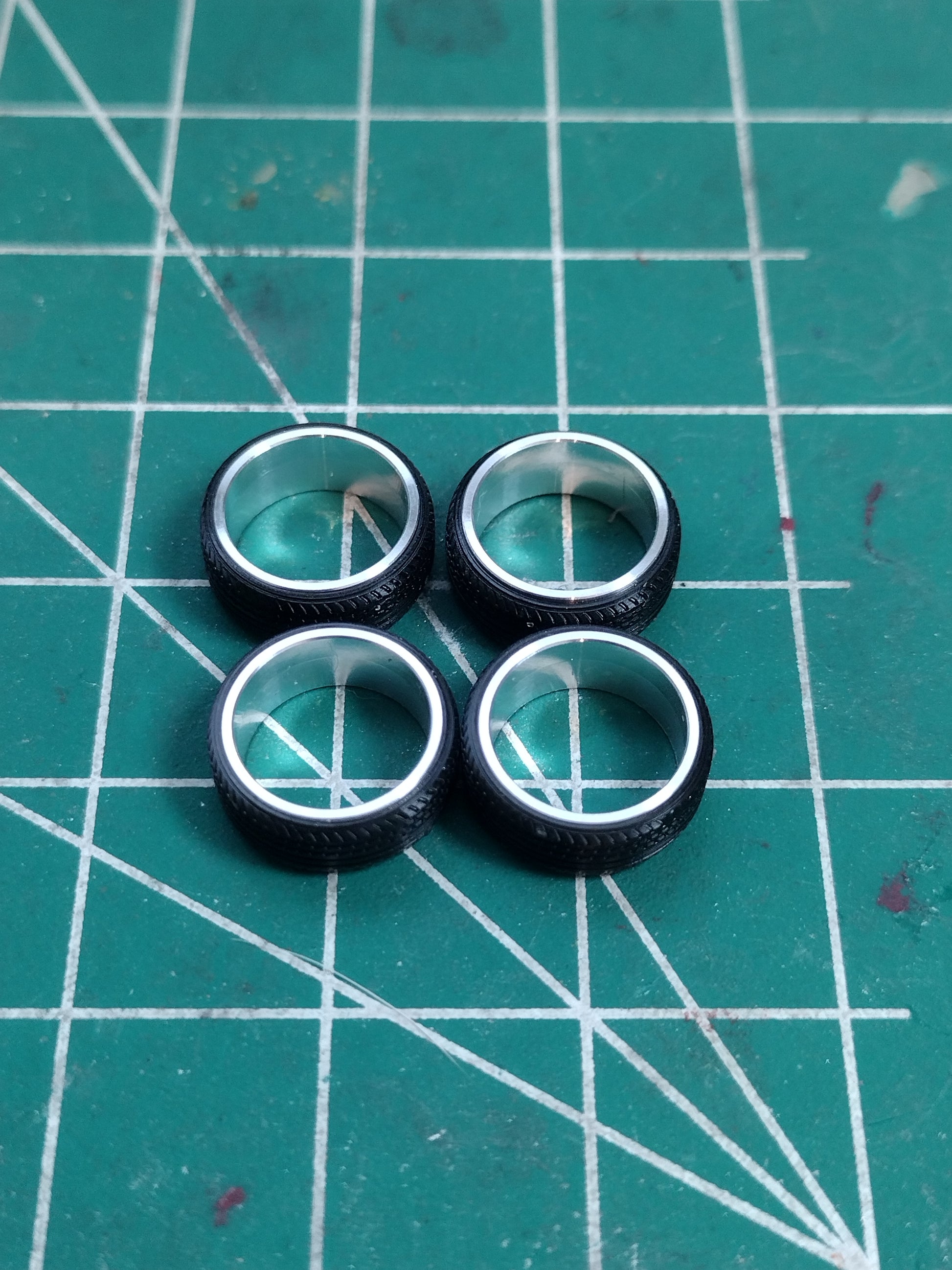 Polished aluminum hoops with 3d printed resin tires, set of 4 13mm x 5mm