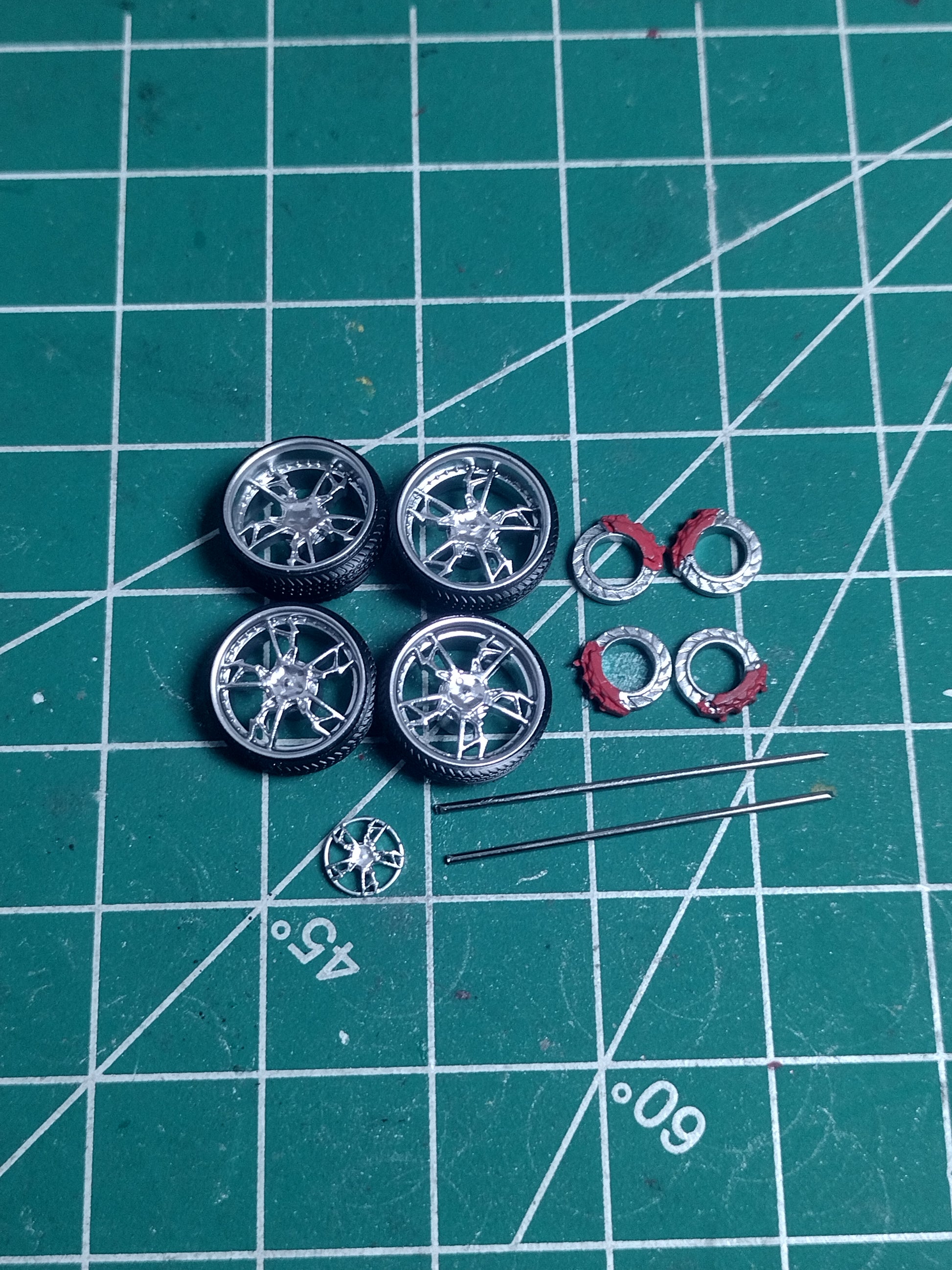 28" 13.3 mm offset wheels 3d printed 1/64 scale wheels with brakes and axels included.