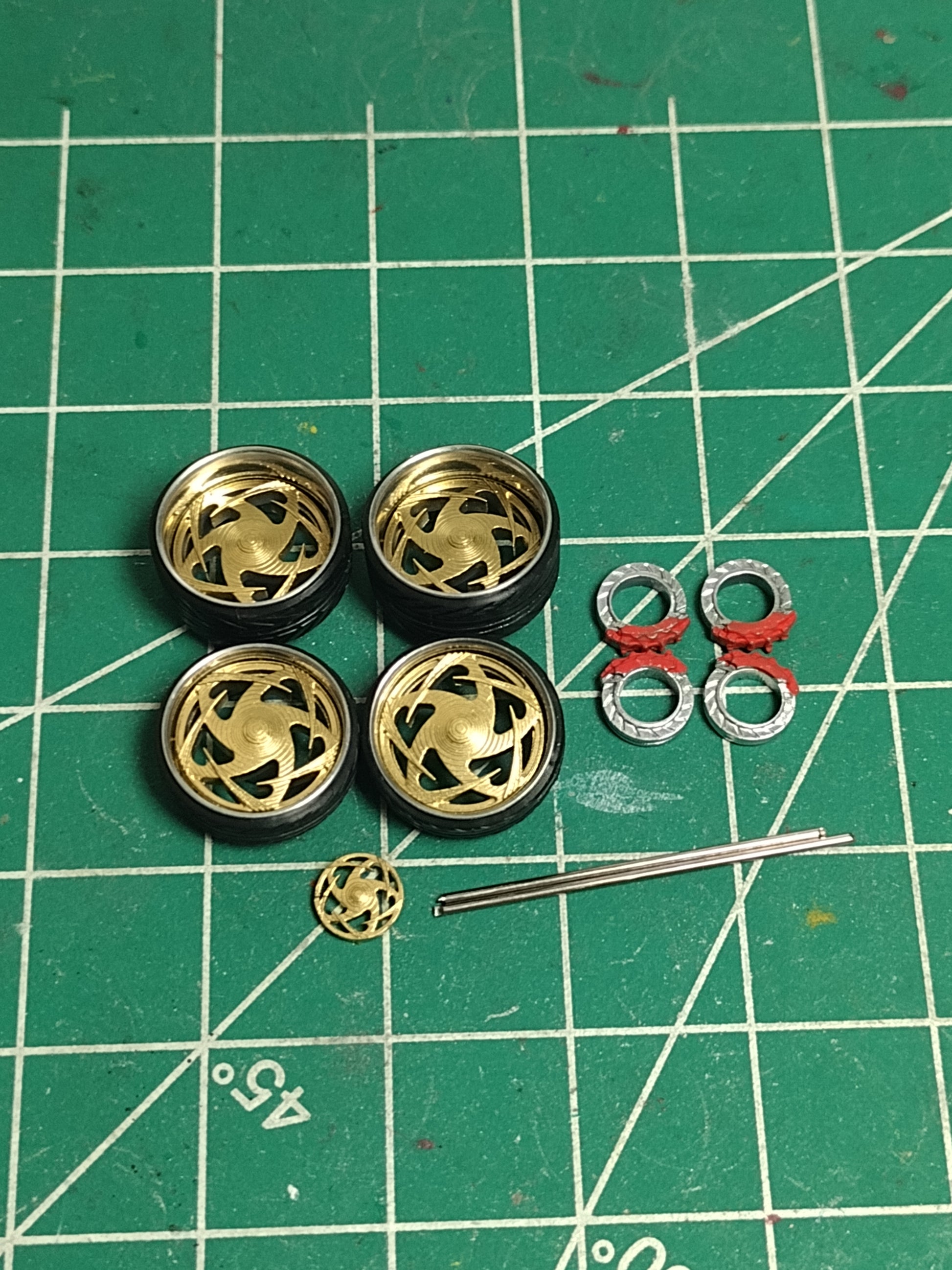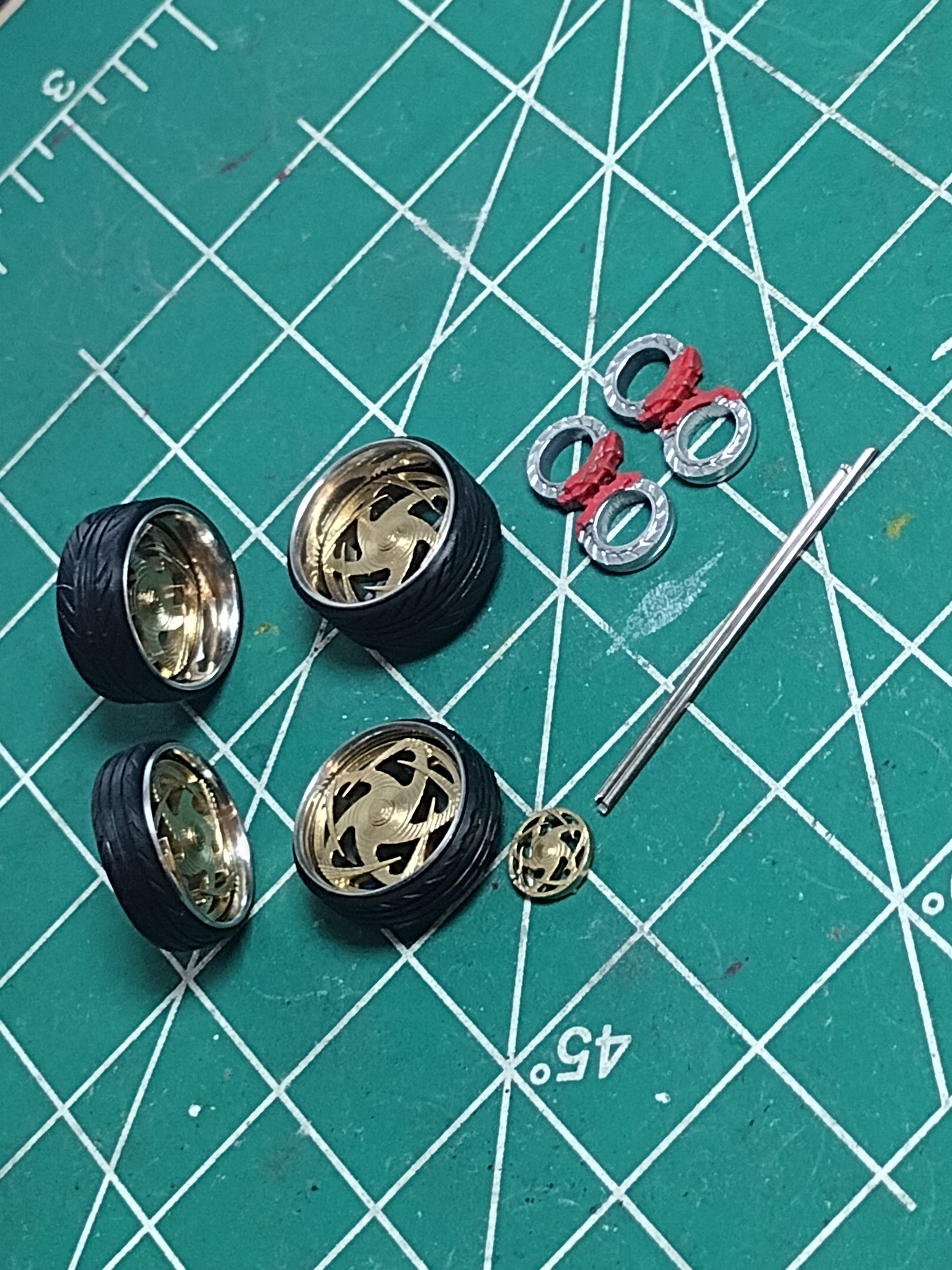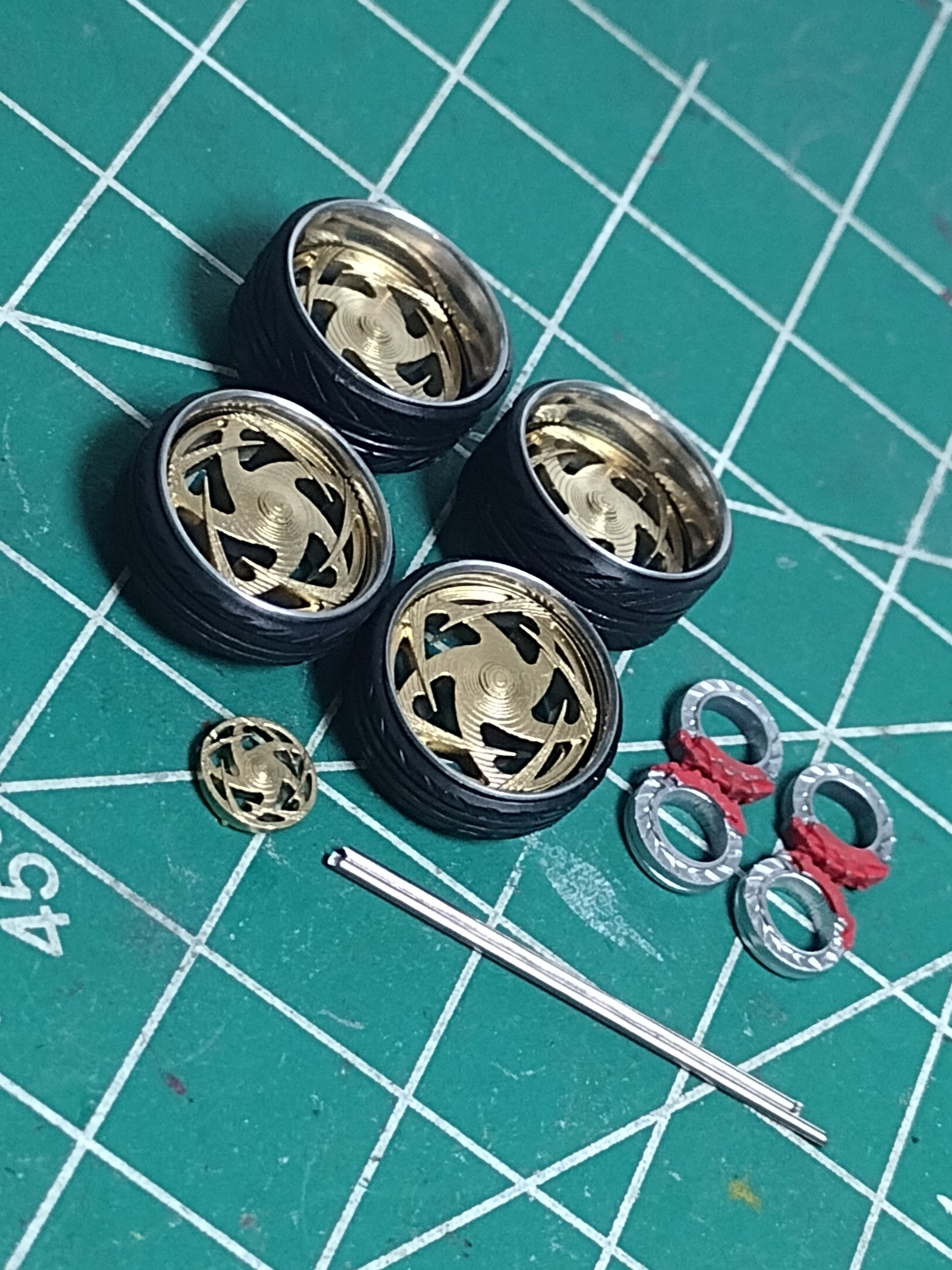 3d printed 30" offset wheels 3d printed face polished aluminum barrel and rubber tires 1/64 scale wheels with brakes and axels included.